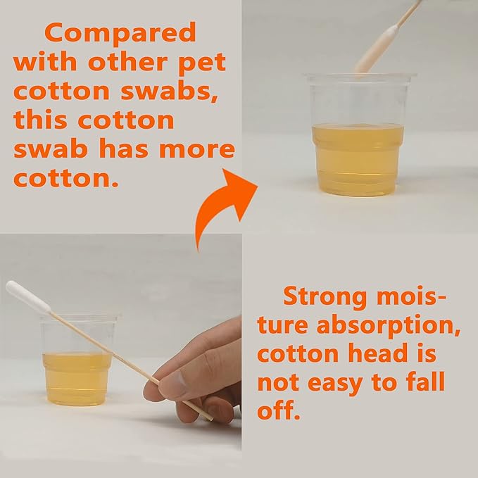 - [High-quality] Spiral cross-wound, to ensure that the cotton head will not fall off easily, the specially lengthened cotton head cannot pass through the dog’s ear canal, nor can it touch the deep part of the ear, safe for your puppy.