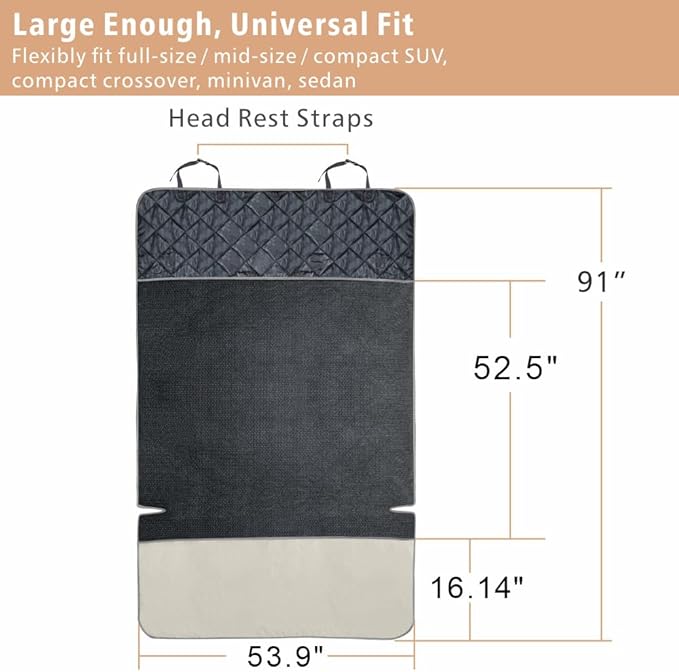 - Water Resistant Cargo Liner: 4 water-resistant layers quilted, wear-proof 600D oxford fabric, waterproof and protects your car seat from pet dander, hair, spills, odors, mud and water; Easy to clean just by wiping away dirt or vacuuming, washable. Tips: If there's a pee accident, please clean immediately.