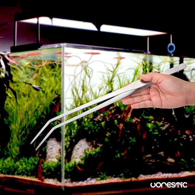 - 2 Pcs Curved and Straight Long Tweezers Set - it comes with two 15 inches extra long tweezers essential for adding aquarium or terrarium plants, remove dead and redundant aquatic plants, move aquarium decorations, and feed fish, reptiles and insects