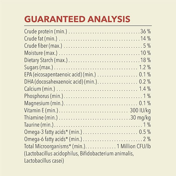- Dry cat food*** made with 65% animal ingredients* and 35% fruits, vegetables and botanicals****