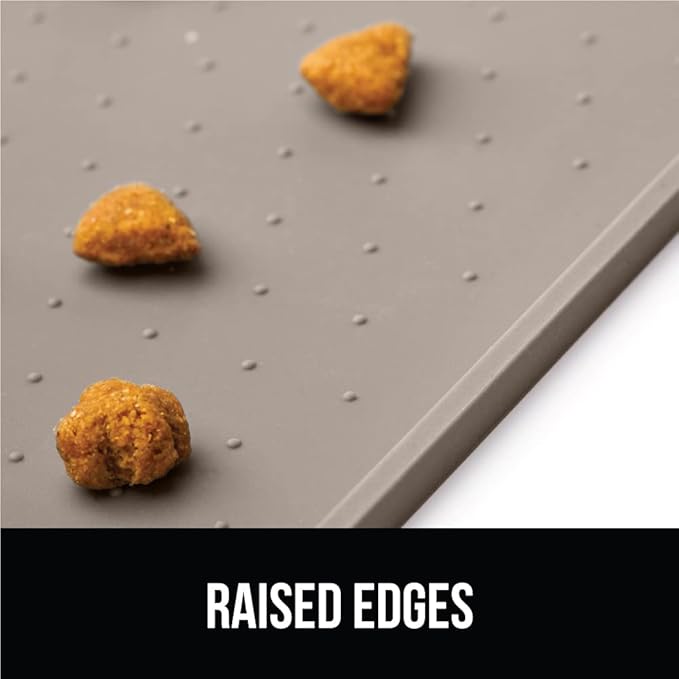 GORILLA GRIP 100% Waterproof Raised Edge BPA Free Silicone Pet Feeding Mat, Dog Cat Food Mats Contain Spills Protects Floors, Placemats for Cats and Dogs Water Bowl, Pets Accessories 28x18 Beige