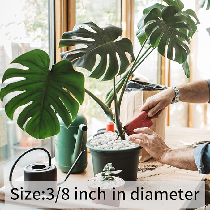 - 【White Rocks】Small white stones are polished without sharp edges and will not harm your succulents or potted cactus. Covering the soil with a layer of white gravels will not only make your succulents stand out, but also keep the soil moisture and help plants grow better.used white stones to top the soil in houseplants,makes everything look really clean and keeps the gnats away