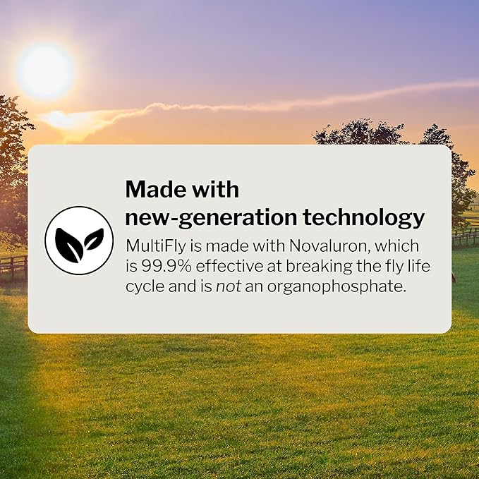 - EFFECTIVE - Contains active ingredient Novaluron, which is an Insect Growth Regulator. This new generation technology is 99.9% effective at breaking the fly life cycle to help eliminate the fly population in your barn.