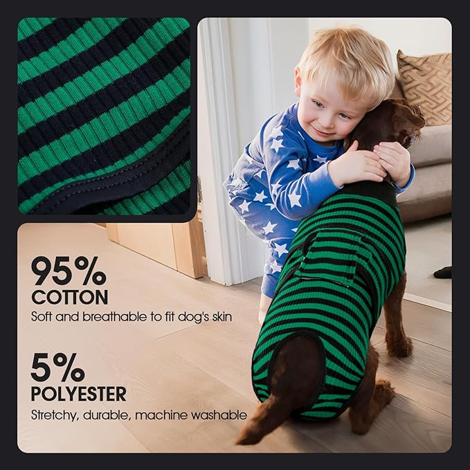 FUAMEY Recovery Suit for Dogs After Surgery,Soft Breathable Dog Bodysuit E-Collar & Cone Alternative Surgical Suit,Male Female Dog Neuter Spay Suits Anti Licking Wounds Onesie Green Black Stripes M