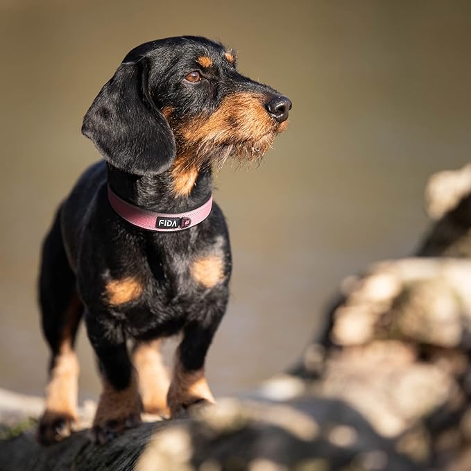 Fida Heavy Duty Dog Collar, Ultra Comfortable Soft Neoprene Padded, Adjustable Reflective Nylon Pet Collar with Durable Metal Belt Buckle for Medium Breeds (M, Pink)