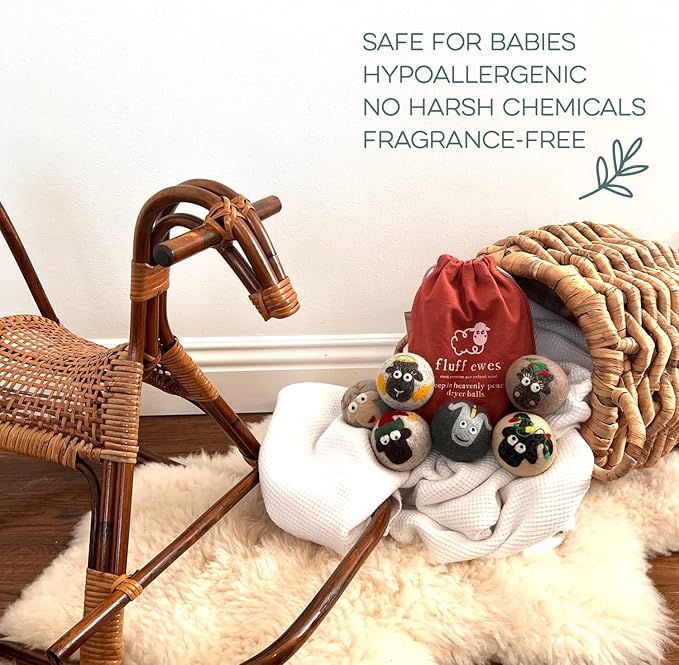 - NATURAL AND SAFE FOR SENSITIVE SKIN: Protect your family with these wool dryer balls made from 100% premium New Zealand wool. Great for baby clothes and delicate fabrics, these fragrance-free dryer balls wool cute option keeps laundry soft without harsh chemicals. Feel confident using them if you have sensitive skin for safer, healthier laundry.