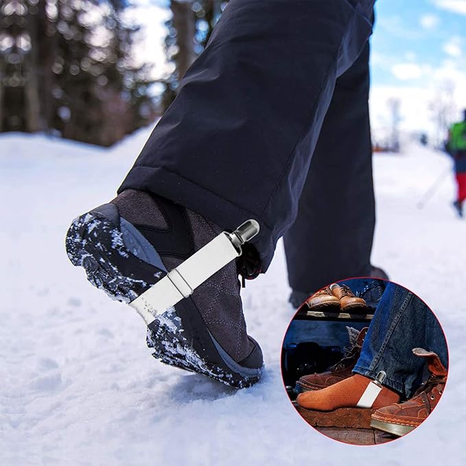 - Good quality material: The boot clips are made of high qualified stainless steel metal clip with teeth and elastic strap, sturdy ,which has good elasticity and durability,stay elastic after use, and stretch to fit your body comfortably