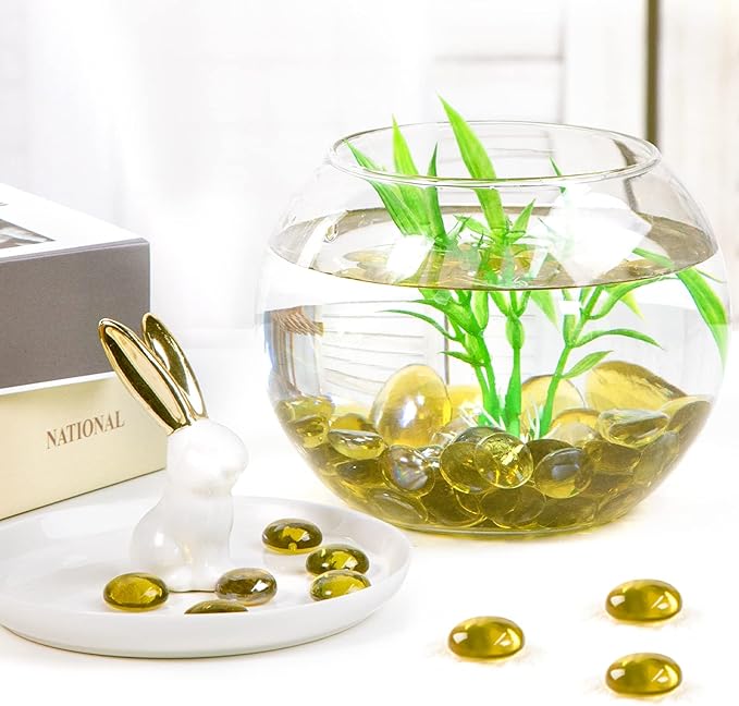 - Widely Used - There are 1LB flat glass marbles to satisfy large quantity needs. These flat yellow glass marbles can be DIY craft materials, vase fillings, gift bag fillers, fish tank fillers, table decorations, etc. You can do whatever you want with these amazing glass marble toys. These flat glass marbles can also effectively improve kids eye to hand coordination and enhance their fine motor skills.