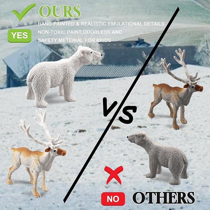 - Realistic Details: The plastic arctic character figurines are finely hand painted and sculpted by experts, with ture to life details, active poses and appealing colors, each of the animal figure is lifelike.