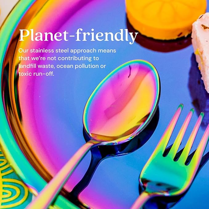 - Easy to Clean and Stain Resistant — Designed with busy families in mind, Ahimsa stainless steel rainbow spoons and forks are dishwasher-safe. Our kids stainless steel utensils travel well and are the best small forks and spoons for both everyday meals and on the go, thanks to the perfect blend of fun and durability.