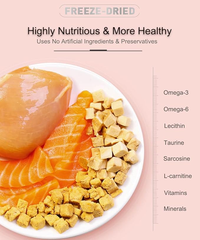 - EASY TO DIGEST SIMPLE ON THE GO TREAT– We Start with Fresh Meat Diced into Small Bites, Then into Our Freeze-Dryers, Where We Remove the Moisture Not the Nutrients. An Excellent Source of Protein and Amino Acids, Just as Your Dog or Cat Would Eat in Nature.