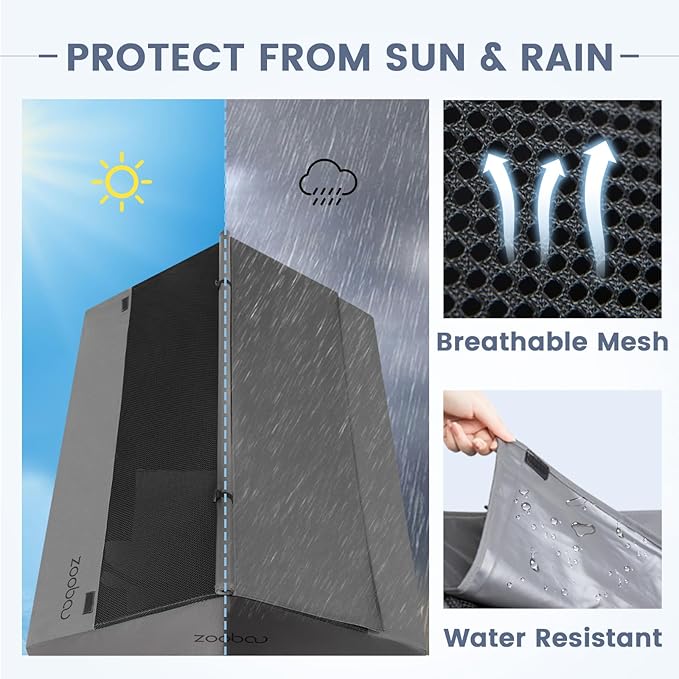 - Upgraded Durability for Outdoor Shelter: Step into the future of pet housing with our latest upgrade. Boasting an extra thick 600D PVC oxford fabric, our outdoor dog house ensures robust weatherproof protection. The 190g mesh fabric promotes a breezy sanctuary, offering a harmonious blend of toughness and tranquility for your dog's indoor or outdoor moments