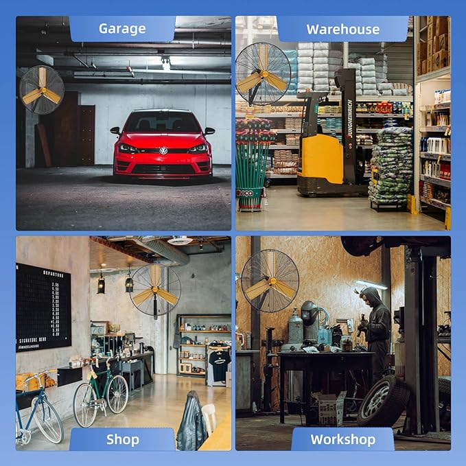 - 3 POWERFUL SPEED SETTINGS - This high velocity 30" Oscillating Industrial Wall Fan features 3 powerful speeds and 3 metal fan blades that move huge volumes of air, airflow up to 8550 CFM, allow you to adjust the cooling temperature to fit your needs.