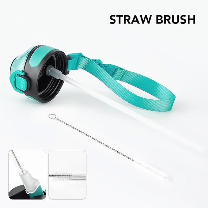 - Humanized Design: The one-hand operation button allows for easy access to water. Highly suitable for boys and girls, and all ages. The flip-top lid of the insulated bottle is used a secure lock, making it dust-free and leak-proof. The included straw brush makes maintaining your bottle's cleanliness uncomplicated and efficient.