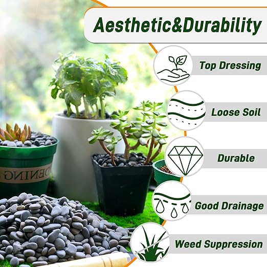 - 【Gravel for Plants】Garden rocks can be used on top of plants to decorate succulents and to keep soil from flying everywhere when watering. When used at the bottom, the gravels contribute to effective drainage, preventing root rot and overwatering.