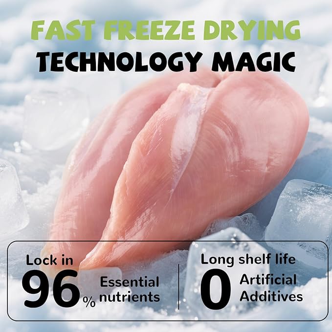 - Single Fresh Ingredient: PAWUP's freeze dried pet treats take fresh chicken breast as first and only one ingredient, the chicken are all from free-range chickens, which can provide higher quality protein. Indulge your pets with the pure essence of freshly sourced chicken in every bite