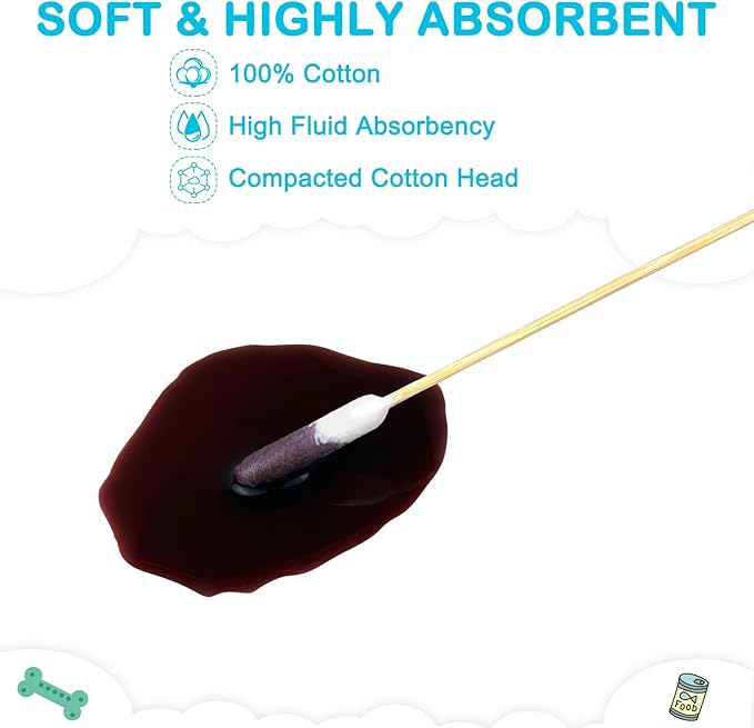 - Premium, Pet-Safe Materials: Our100 PCS ear cotton swabs are crafted from 100% natural cotton, ensuring they are soft, absorbent, and gentle on your pet's sensitive ears. These swabs are safe and effective for both dogs and cats.