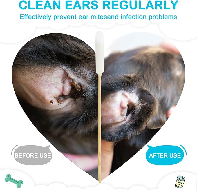 - Longer Reach for Better Cleaning: The extra-long 6-inch bamboo handle provides better control and reach, allowing you to clean deep into your pet's ear canal with ease and precision. This design helps ensure thorough cleaning without causing discomfort.