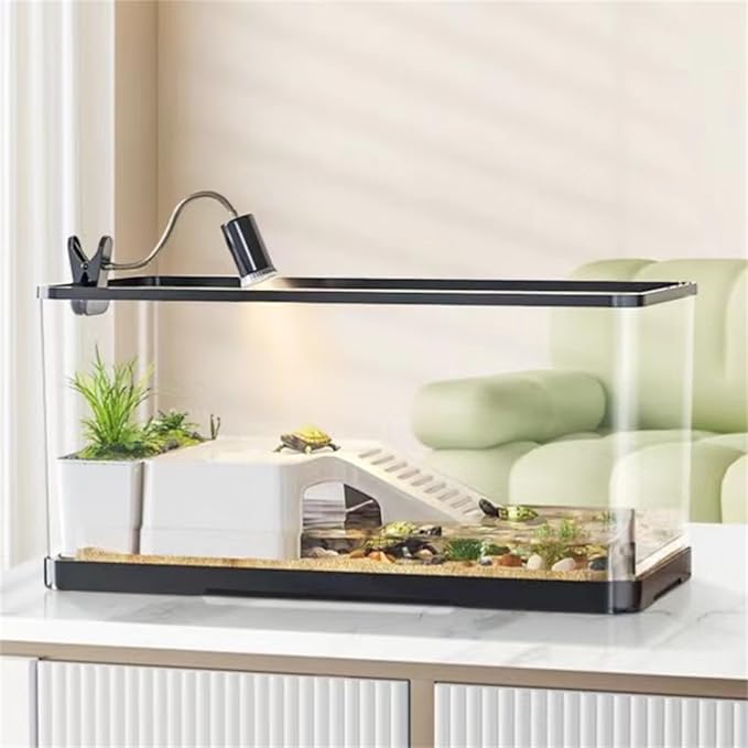 - 【Complete Small Reptile Starter Kit】Includes: 1* tank +1 lid, 1* light +1* UVA/UVB light bulb, 1* filter, 1* sundeck +1* soil culture box, 3* decorative plants +1* stone pack +1*filter ball; Including everything you need