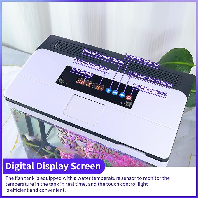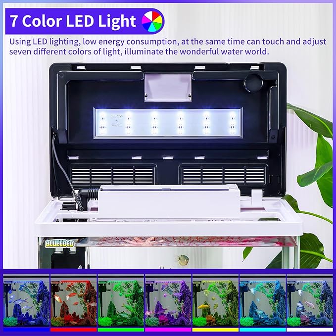 - 【7-Color LED Energy-Efficient Lighting】: Utilizing LED illumination, this aquarium provides high-brightness ecological lighting that is energy-efficient and long-lasting. You can also touch-adjust the lighting to seven different colors, illuminating your captivating aquatic world.