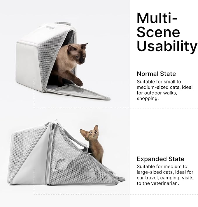 - Expandable Design For All Ages: Our versatile cat backpack is designed to grow with your pet. The expandable feature allows you to adjust the space as your cat matures, making it suitable for use from kitten to adult stages.