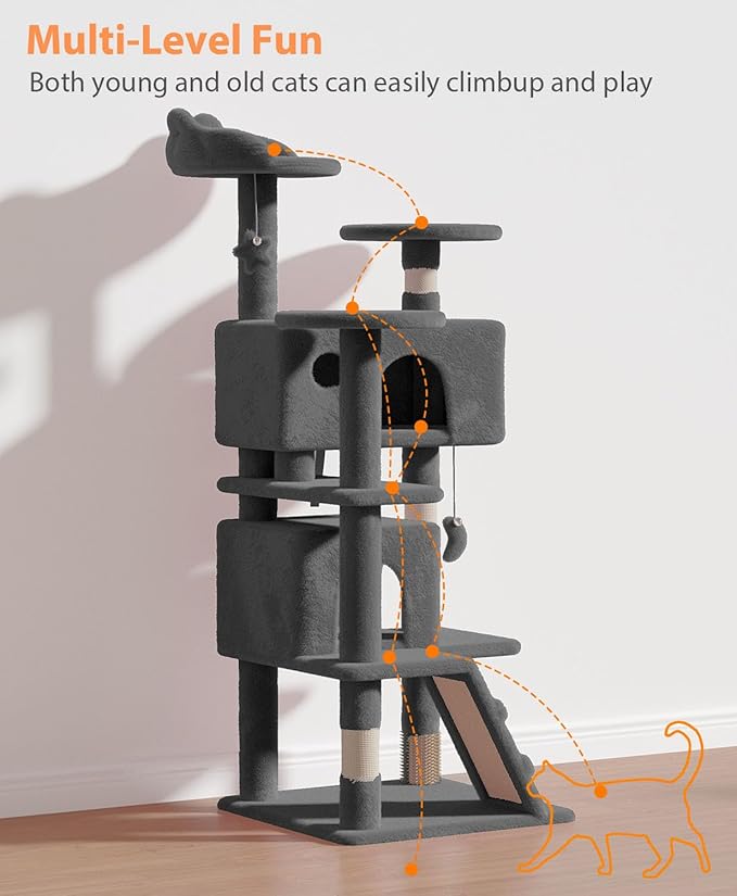 - [Multi-Level Cat Playground] Designed with multiple levels, this cat tower makes it easy for cats to climb and explore the vertical space, satisfying their natural instincts and activity needs