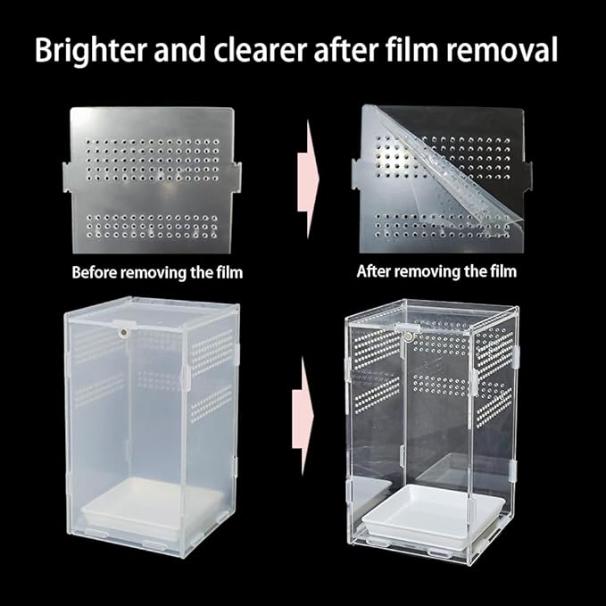 - 【reptile enclosure】Acrylic material,offering a 360-degree view and is exceptionaly sturdy and durable; Magnetic door design is very convenient; Great as a bug enclosure, praying mantis enclosure, arboreal enclosure, bug tank.