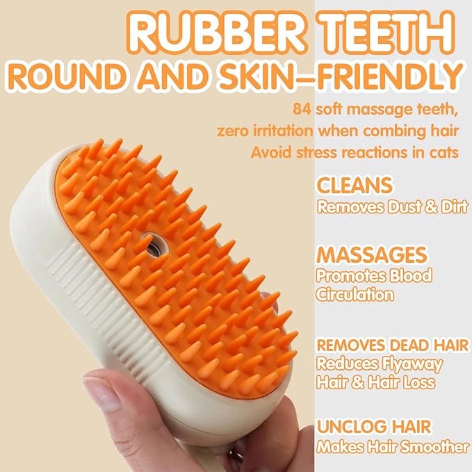 - 【Rechargeable Cat Steam Brush】Equipped with a convenient USB power port, you can groom your pet anytime, anywhere