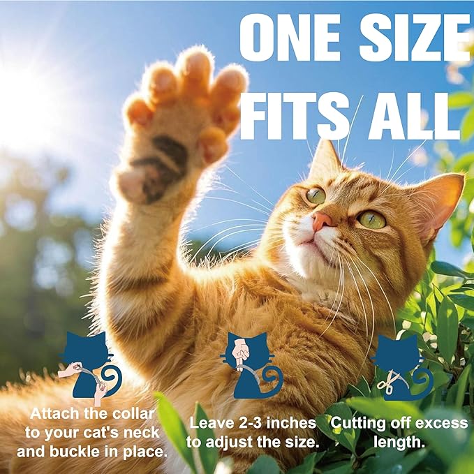 - 【NATURAL INGREDIENT】: Our cat flea collars ingredients are derived from natural plant essential oils to protect your cat from skin allergies or poisoning, providing safe, effective flea & tick prevention for your cat. Healthy ingredients are a valuable addition to your cat's life.