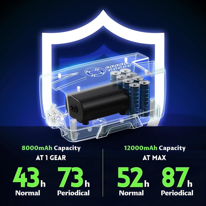- 【Plug-in&Self-Start Battery】Under black-out/power off occasion, this aquarium air pump self-starts to battery powered immediately. The aquarium bubbler could run and provide oxygen for days in maximum, with a 87 hours battery life of 8000/12000mAh battery. This AC/DC air pump is rechargeable, and could work as a back up air pump in emergency. The oxygen bubbler could also work in long-time fishing travel, keeping the baits alive.