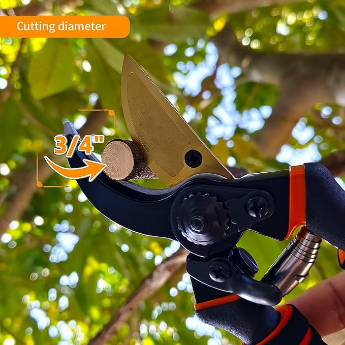 - 🪴8.5" Professional Premium SK5 Steel with Titanium Bypass Pruning Shears-Ultra-sharp And Durable,Ergonomically Designed,Versatility Pruners For Gardening,Safe And Easy To Handle