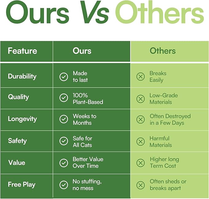 - ๐ฟ 100% Natural Ingredients - Made entirely from plant-based ingredients you can trust: Catnip (Nepeta cataria), Catmint (Nepeta racemosa), and Polygonum officinale, a chew-safe wood from the kiwifruit family. No chemicals, no preservatives-just pure botanical joy for your cat.