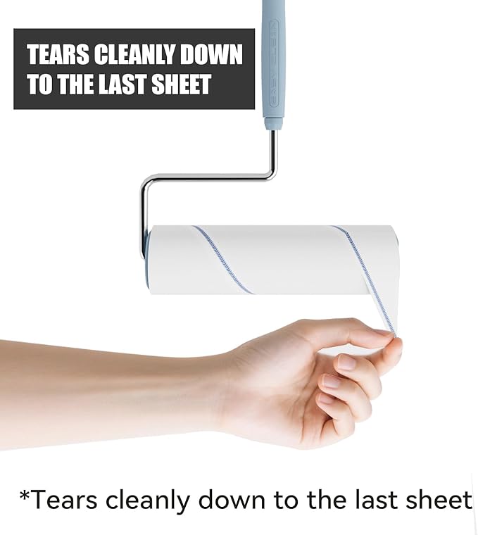 - EASY PEEL-OFF: Easy to tear off the used tape, The clear line running across the tape from one side to another makes it easy to find the cutting edges while using this large lint roller.