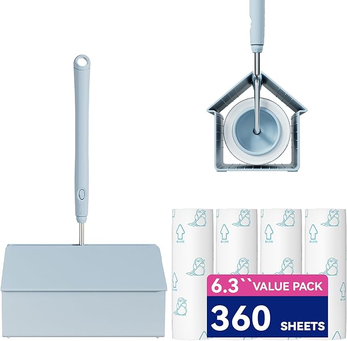 Extra Sticky Large Surface Lint Roller, 6.3'' Giant Lint Roller for Pet Hair, 360 Sheets/ 4 Refills, Long Handle Lint Remover for Clothes, Furniture (1 Roller + 360 Sheets)