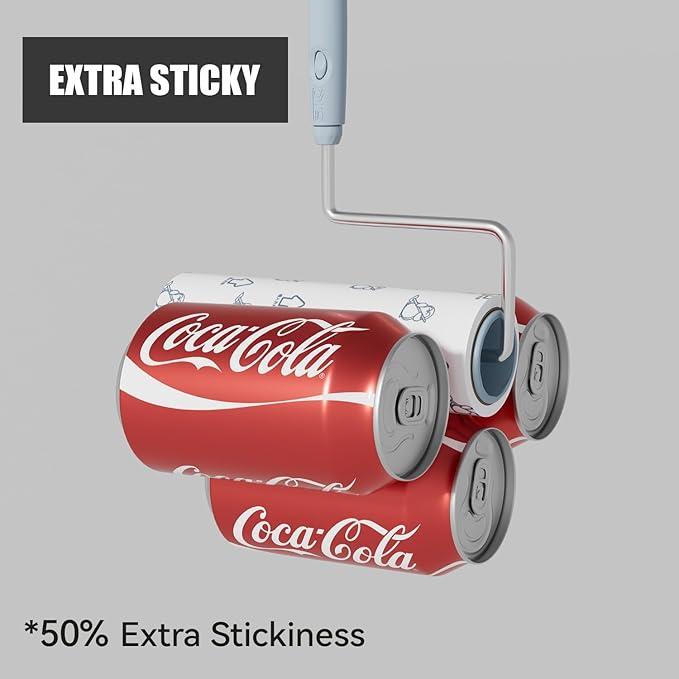 - EXTRA STICKY: 50% Stickier roller refill is extra sticky to pick up pet hair and lint without damaging clothes or fabrics.