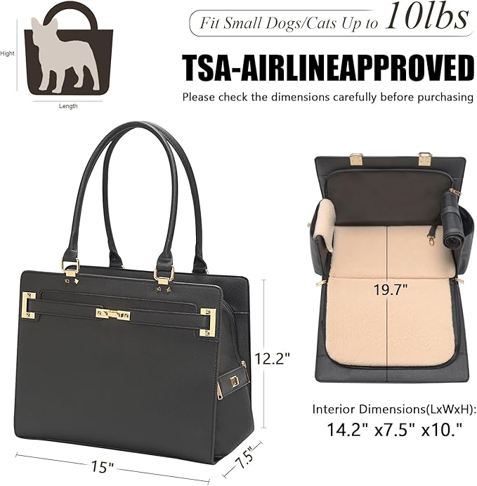 - Stylish & Functional Design Pet Carrier: Modern, chic look with sturdy and water-resistant vegan leather—perfect for fashionable pet owners who want style without sacrificing practicality. And an elastic safety leash is included inside to help prevent your pet from jumping or escaping