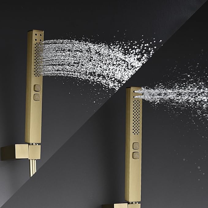 - Water-Saving & Enhanced Performance Air-injection design boosts water pressure while conserving water, delivering a powerful shower experience. The 10" ultra-thin square rainfall showerhead offers a gentle, natural rain-like sensation and revitalizing massage.