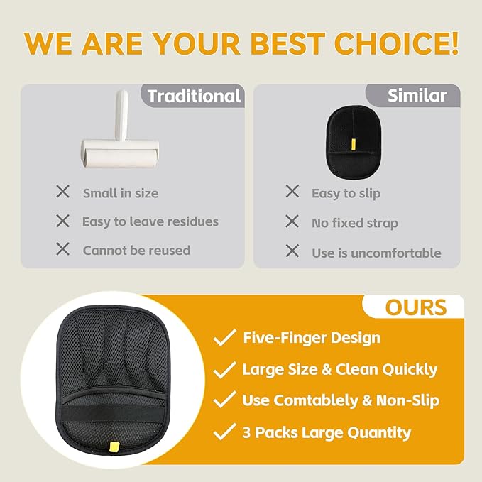 - Reusable & Easy to Clean: Pet hair removal glove are washable and reusable.Hair cleaning gloves simply rinse with water or wipe off hair after use—ready for the next cleaning session.Ditch disposable lint rollers