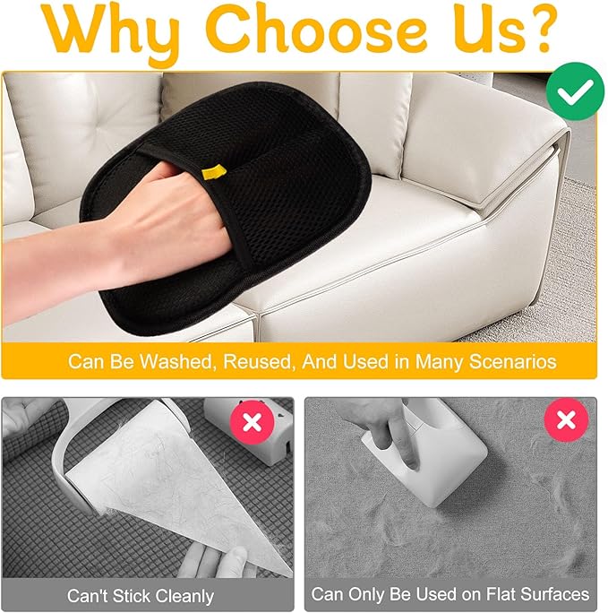 - VERSATILE: This pet hair grooming gloves is not only suitable for cleaning pets, but also for furniture, carpets, car seats and sofas. It is a must-have tool for hair removal needs.