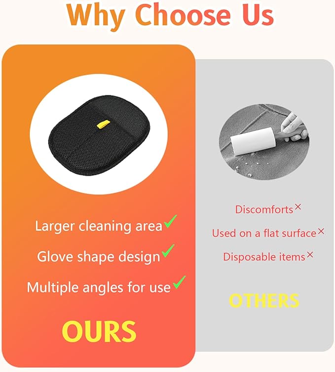 - 【Wide Coverage, Quick Results】 Designed to handle large surfaces with ease, these dog hair removal let you clean sofas, carpets, rugs, and more in record time. No more tedious rolling or spot-cleaning – just glide your hands and watch the magic happen